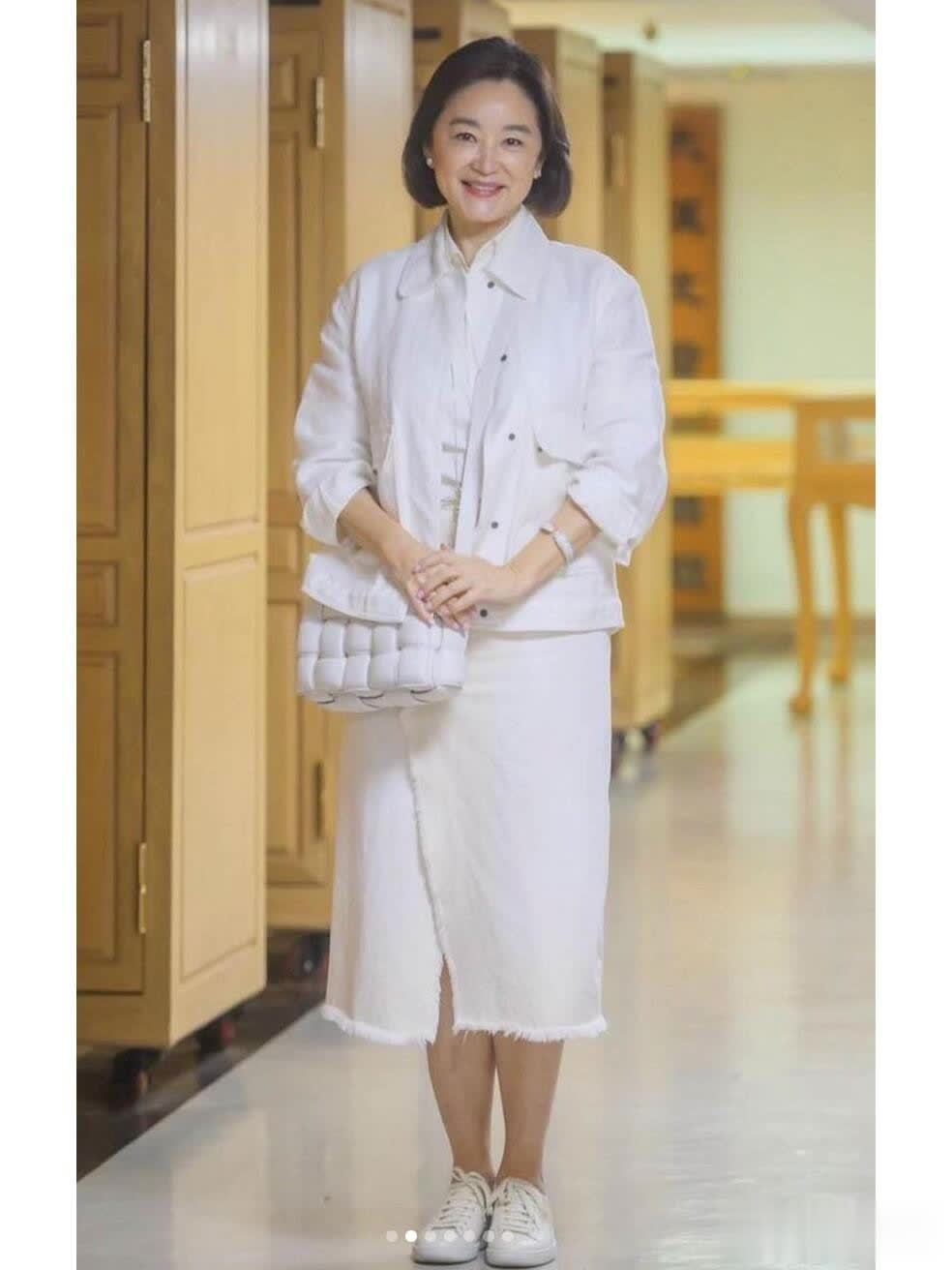 林青霞的穿搭从来不是靠大牌堆砌,而是用简约版型和质感细节,把成熟女性的优雅刻进骨子里,这一身白色系的套装搭配,则把松弛感和高级感平衡得恰到好处。白色翻领短外套叠搭同色系衬衫,挺括版型能够修饰肩线,七分袖设计利落不拖沓,下装搭配白色的半身裙,裙长落在小腿中部,露出纤细脚踝,显瘦还增高。